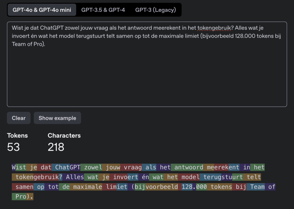 💡 Tip: gebruik de tokencounter (platform.openai.com/tokenizer) om vooraf te checken of je onder de limiet blijft – vooral handig bij lange teksten of analyse-opdrachten. Zo voorkom je dat ChatGPT afbreekt of context kwijtraakt.